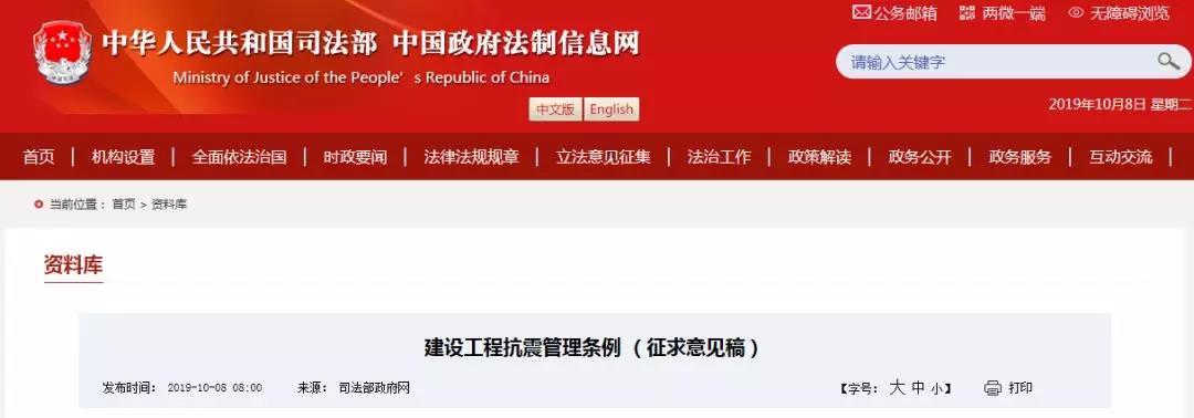 建設(shè)工程抗震管理條例 (征求意見稿) 第一章 總則 第一條 為提高建設(shè)工程抗震防災(zāi)能力,降低地震災(zāi)害風險,保障人民生命財產(chǎn)安全,根據(jù)《中華人民共和國建筑法》《中華人民共和國防震減災(zāi)法》等法律,制定本條例。 第二條 在中華人民共和國境內(nèi)從事建設(shè)工程抗震的勘察、設(shè)計、施工、鑒定、加固、維護等活動及其監(jiān)督管理,適用本條例。 第三條 建設(shè)、勘察、設(shè)計、施工、工程監(jiān)理、隔震減震裝置生產(chǎn)、工程質(zhì)量檢測、抗震性能鑒定等單位和相關(guān)人員,應(yīng)當依法對建設(shè)工程抗震負責。 第四條 建設(shè)工程抗震應(yīng)當堅持以人為本、全面設(shè)防、突出重點的原則。 第五條 國務(wù)院住房城鄉(xiāng)建設(shè)、交通運輸、水利、工業(yè)和信息化、能源等部門,按照各自職責分別負責全國房屋建筑和市政基礎(chǔ)設(shè)施、交通、水利、通信、能源等建設(shè)工程抗震的監(jiān)督管理。 縣級以上地方人民政府住房城鄉(xiāng)建設(shè)、交通運輸、水利、通信、能源等部門,按照各自職責分別負責本行政區(qū)域內(nèi)房屋建筑和市政基礎(chǔ)設(shè)施、交通、水利、通信、能源等建設(shè)工程抗震的監(jiān)督管理。 縣級以上人民政府其他有關(guān)部門應(yīng)當依照本條例和其他有關(guān)法律、法規(guī)的規(guī)定,在各自職責范圍內(nèi)負責建設(shè)工程抗震相關(guān)工作。 第六條 國家鼓勵和支持建設(shè)工程抗震技術(shù)的研究、開發(fā)和應(yīng)用。 各級人民政府應(yīng)當組織開展建設(shè)工程抗震知識宣傳普及,提高社會公眾抗震防災(zāi)意識。 第七條 國家建立建設(shè)工程抗震調(diào)查、統(tǒng)計、監(jiān)測制度。 縣級以上人民政府應(yīng)當組織有關(guān)部門對建設(shè)工程抗震性能、抗震技術(shù)應(yīng)用、產(chǎn)業(yè)發(fā)展等進行調(diào)查、統(tǒng)計和監(jiān)測。 第二章 勘察、設(shè)計和施工 第八條 建設(shè)工程應(yīng)當避開抗震防災(zāi)專項規(guī)劃確定的危險地段。確實無法避開的,應(yīng)當采取符合功能要求和適應(yīng)地震破壞效應(yīng)的抗震措施。 第九條 新建、擴建、改建建設(shè)工程,應(yīng)當符合抗震設(shè)防強制性標準。 第十條 建設(shè)單位應(yīng)當對建設(shè)工程勘察、設(shè)計、施工全過程負責,在勘察、設(shè)計和施工合同中明確采用的抗震設(shè)防強制性標準,按照合同要求對勘察設(shè)計成果文件進行核驗,組織工程驗收,確保建設(shè)工程符合抗震設(shè)防強制性標準。 建設(shè)單位不得明示或者暗示勘察、設(shè)計、施工等單位和從業(yè)人員違反抗震設(shè)防強制性標準,降低工程抗震性能。 第十一條 建設(shè)工程勘察文件中應(yīng)當說明抗震場地類別,對場地地震破壞效應(yīng)進行分析,并提出工程選址、不良地質(zhì)處置等建議。 建設(shè)工程設(shè)計文件中應(yīng)當說明抗震設(shè)防烈度、抗震設(shè)防類別以及采用的抗震措施。采用隔震減震技術(shù)的建設(shè)工程,設(shè)計文件中應(yīng)當對隔震減震裝置技術(shù)性能、檢驗檢測、施工安裝和使用維護等提出明確要求。 第十二條 對位于高烈度設(shè)防地區(qū)、地震重點監(jiān)視防御區(qū)的下列建設(shè)工程,設(shè)計單位應(yīng)當在初步設(shè)計階段將建設(shè)工程抗震設(shè)防專篇作為設(shè)計文件組成部分: (一)重大建設(shè)工程; (二)地震時可能發(fā)生嚴重次生災(zāi)害的工程; (三)地震時使用功能不能中斷或者需要盡快恢復(fù)的工程。 第十三條 對超限高層建筑工程,設(shè)計單位應(yīng)當在設(shè)計文件中予以說明,建設(shè)單位應(yīng)當在初步設(shè)計階段將設(shè)計文件報送省、自治區(qū)、直轄市人民政府住房城鄉(xiāng)建設(shè)主管部門進行抗震設(shè)防審批。具體辦法由國務(wù)院住房城鄉(xiāng)建設(shè)主管部門制定。 設(shè)計單位應(yīng)當依據(jù)超限高層建筑工程抗震設(shè)防審批意見進行施工圖設(shè)計。 第十四條 工程總承包單位、施工單位及工程監(jiān)理單位應(yīng)當加強對建設(shè)工程抗震措施施工質(zhì)量的管理,確保質(zhì)量責任可追溯。 國家鼓勵工程總承包單位、施工單位采用信息化手段采集、留存隱蔽工程施工質(zhì)量信息。 第十五條 學校、幼兒園、醫(yī)院、養(yǎng)老機構(gòu)、應(yīng)急指揮中心、應(yīng)急避難場所等公共建筑,應(yīng)當按照高于一般房屋建筑的要求采取抗震措施。 位于高烈度設(shè)防地區(qū)、地震重點監(jiān)視防御區(qū)的新建學校、幼兒園、醫(yī)院、養(yǎng)老機構(gòu)、應(yīng)急指揮中心、應(yīng)急避難場所等公共建筑應(yīng)當采用隔震減震技術(shù),保證發(fā)生本區(qū)域設(shè)防地震時不喪失建筑功能。 國家鼓勵在裝配式建筑中應(yīng)用隔震減震技術(shù),提高抗震性能。 第十六條 國家應(yīng)當加強隔震減震裝置相關(guān)技術(shù)標準的制定。 隔震減震裝置生產(chǎn)、經(jīng)營企業(yè)應(yīng)當建立質(zhì)量信息管理制度,采集、儲存隔震減震裝置生產(chǎn)、經(jīng)營、檢測等信息,確保隔震減震裝置質(zhì)量信息可追溯。隔震減震裝置質(zhì)量應(yīn